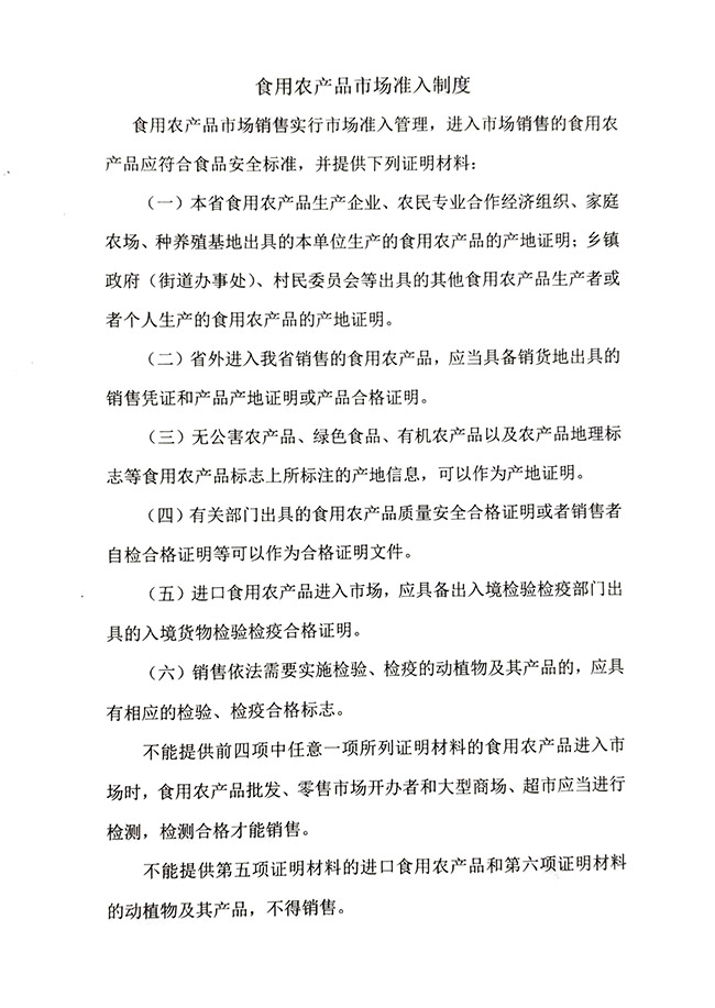 • 食用農(nóng)產(chǎn)品市場準(zhǔn)入制度