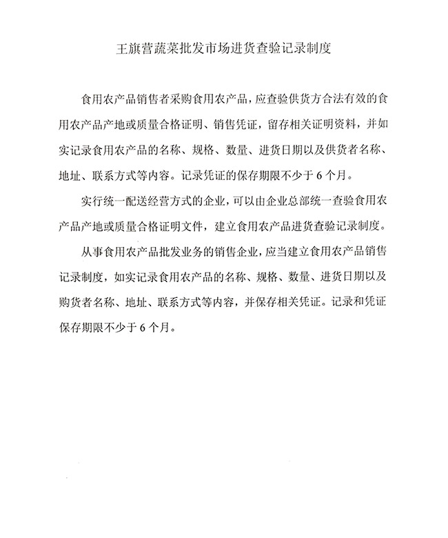 • 王旗營蔬菜批發(fā)市場進(jìn)貨查驗(yàn)記錄制度