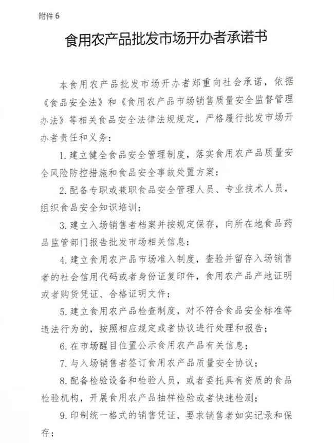 • 食用農(nóng)產(chǎn)品批發(fā)市場(chǎng)開辦者承諾書