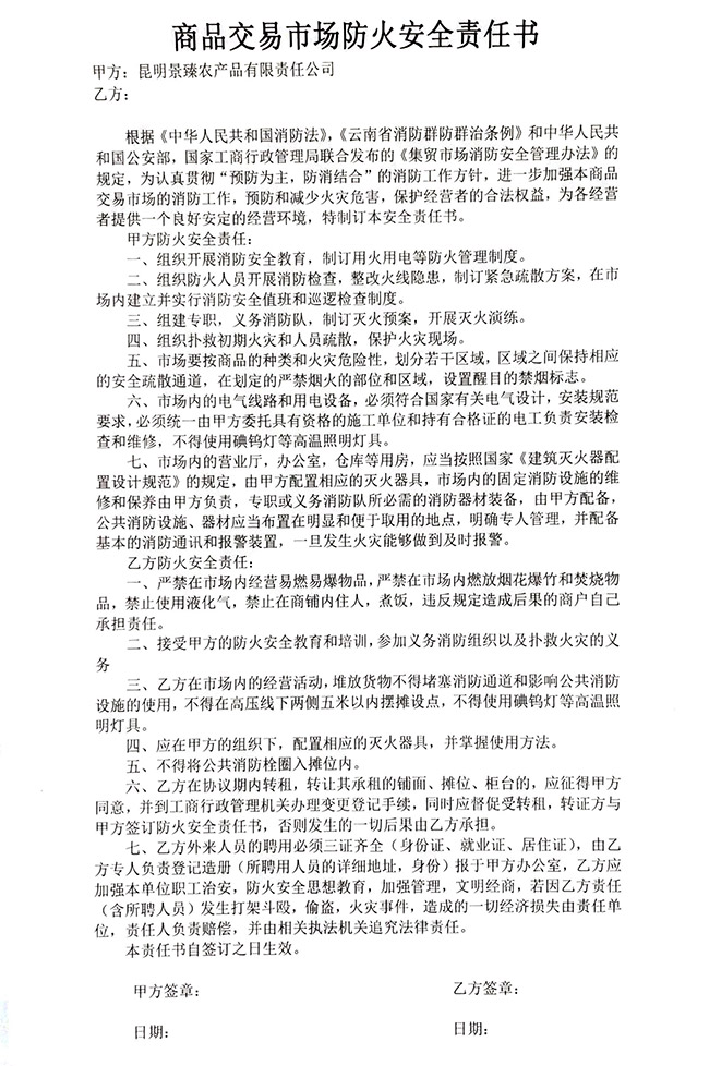 • 景臻·王旗營商品交易市場防火安全責任書