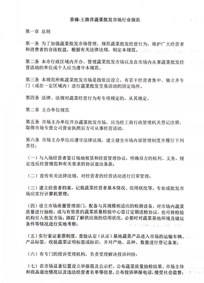 • 景臻·王旗營蔬菜批發(fā)市場(chǎng)行業(yè)規(guī)范
