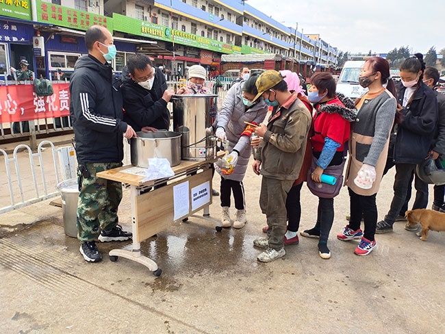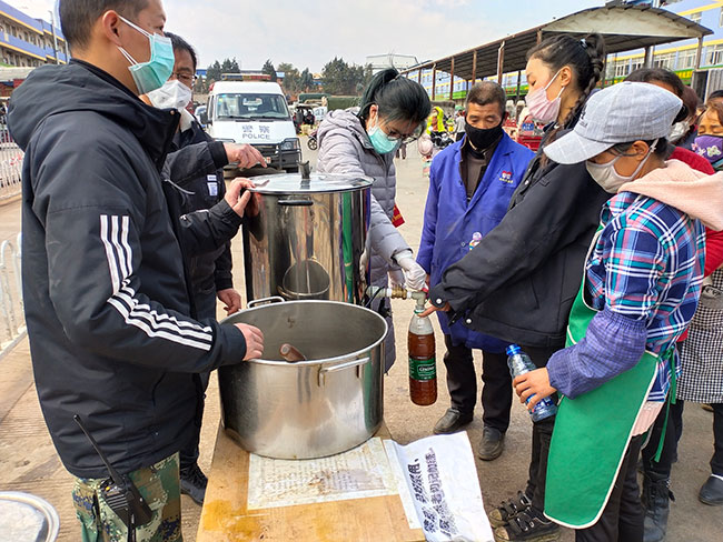 為保證市場正常運(yùn)轉(zhuǎn),做好防治疫情的傳播防控工作,公司安排人員每天上午和下午分兩次時(shí)段進(jìn)行免費(fèi)發(fā)放中藥水給商戶。