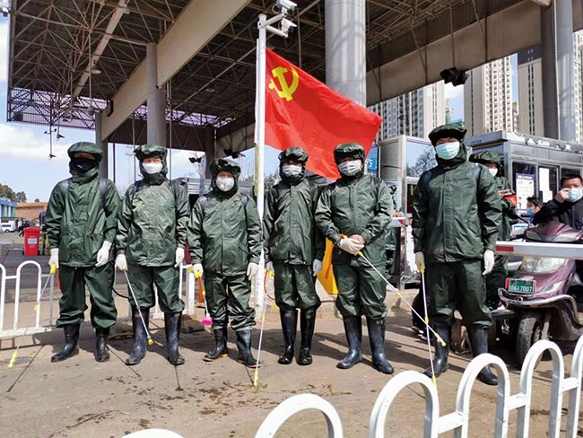 •    為做好疫情的防控工作,公司組建了防控消毒隊,每天對市場交易區(qū)、辦公區(qū)、住宿區(qū)、食堂區(qū)及出入口車輛進行消毒工作,堅決打贏疫情防控阻擊戰(zhàn)。