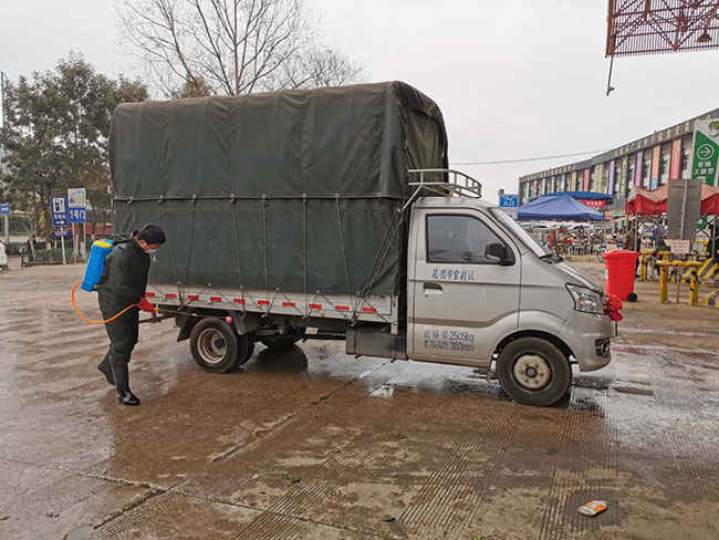 為保證市場正常運轉(zhuǎn),做好防治疫情的傳播防控工作,為讓商戶有一個安全,放心的交易環(huán)境,公司專門組建了防控消毒隊,每天對市場交易區(qū)、辦公區(qū)、住宿區(qū)、食堂區(qū)及出入口車輛進行消毒工作,早中晚各三次。同時每天上午和下午分兩次時段免費發(fā)放中藥水給商戶,并對進出市場的人員嚴格進行體溫檢測及資料登記。下一步公司將專門設立熱成像體溫檢測通道,并設有專門的隔離區(qū),對發(fā)現(xiàn)有體溫異常的人員,立刻隔離處理,并通知相關部門做檢查治療。