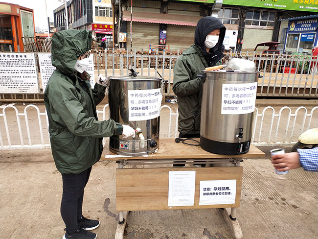 寒風凜冽,工作人員輪流值班每天2次免費發(fā)放中藥水從不間斷