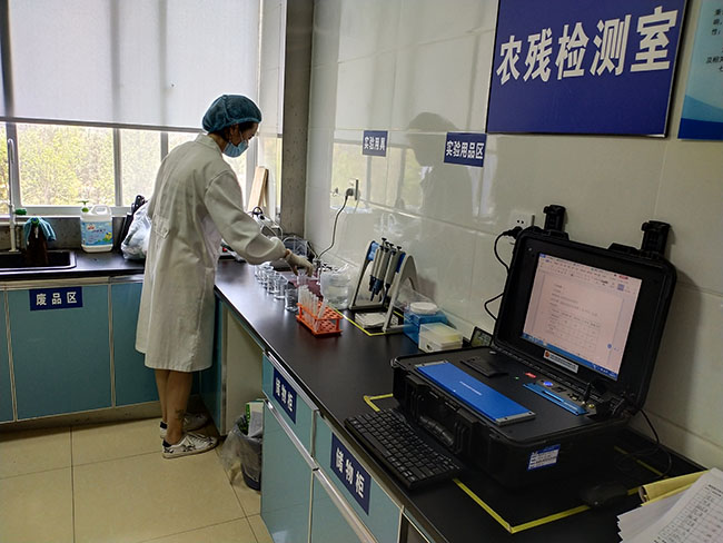 食品安全是一件很嚴(yán)肅的事情,關(guān)乎社會的整體穩(wěn)定及個人的生命健康安全。如何真正實現(xiàn)食品安全,雖仍是一道亟需解答的“難題”,但我們也慢慢摸出了門道,農(nóng)殘檢測相關(guān)標(biāo)準(zhǔn)是必須走的一步。也正是因為如此,景臻·王旗營蔬菜批發(fā)市場一直在致力于完善自己的食品檢測標(biāo)準(zhǔn)體系。在景臻·王旗營蔬菜批發(fā)市場農(nóng)殘檢測中心,專業(yè)檢測人員對剛抽檢的蔬菜樣品進(jìn)行農(nóng)藥殘留檢測。