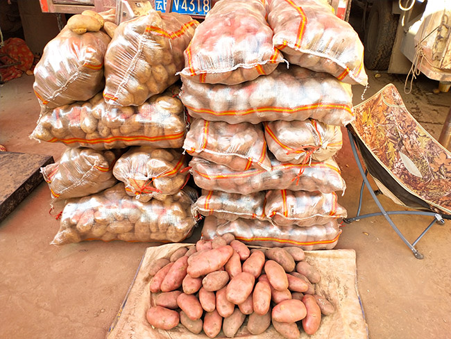 “這里蔬菜真新鮮,價格也比較便宜!币晃慌l(fā)商販告訴小編。批發(fā)市場上的蔬菜品種繁多,胡蘿卜、青蘿卜、土豆、大蔥、白菜等蔬菜應(yīng)有盡有。在一家批發(fā)土豆的攤位前,多位工人正在分揀土豆,商戶告訴小編,他們每天能銷售40多噸土豆。