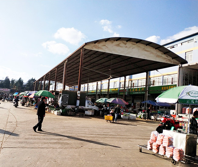 走進位于昆明市東三環(huán)虹橋立交橋南側(cè)的景臻·王旗營蔬菜批發(fā)市場,在寬闊的開放式空間里,一排排攤位前停著大貨車,車上整齊地擺滿泡沫箱或籮筐,其中裝滿了來自全國各地的新鮮蔬菜。