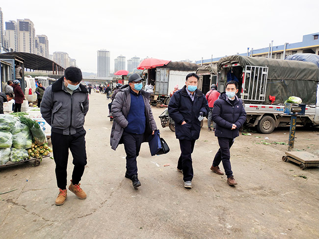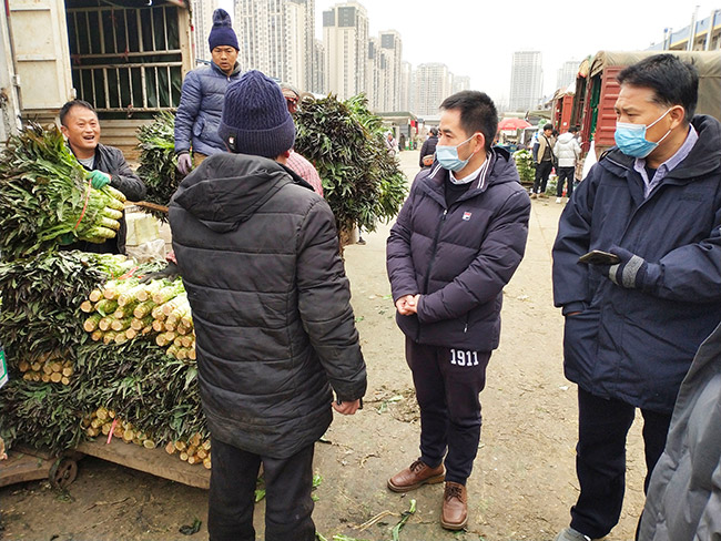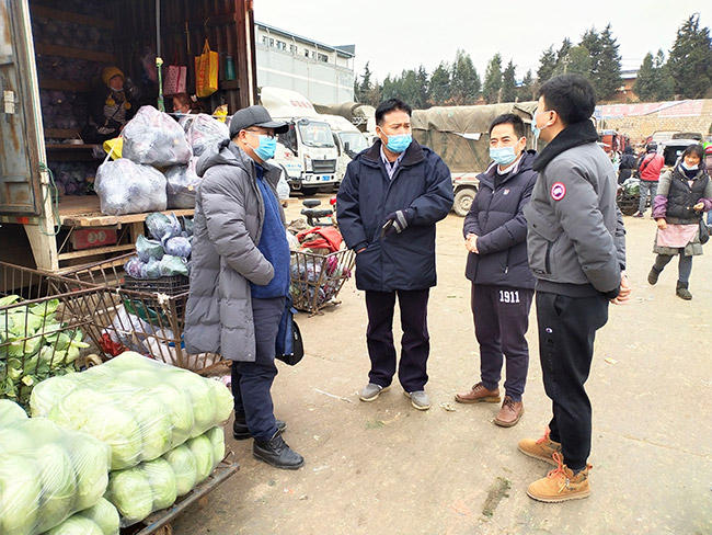 •   1月12日一早昆明市市場監(jiān)管局相關(guān)領(lǐng)導(dǎo)蒞臨市場對蔬菜價(jià)格和蔬菜保供情況進(jìn)行調(diào)研,常務(wù)副總呂錦泉及副總金忠華等一路陪同接待。