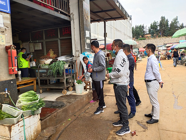 5月7日上午官渡區(qū)市場監(jiān)管局金馬所、官渡區(qū)金馬街道辦事處十里鋪社區(qū)相關(guān)領(lǐng)導(dǎo)蒞臨市場對餐飲行業(yè)食品安全工作進行檢查,檢查嚴(yán)格按照“凈餐館”七個達標(biāo)內(nèi)容執(zhí)行:周邊環(huán)境整潔、就餐場所干凈、后廚合規(guī)達標(biāo)、倉儲整齊安全、餐飲用具潔凈、從業(yè)人員健康、配送過程規(guī)范。