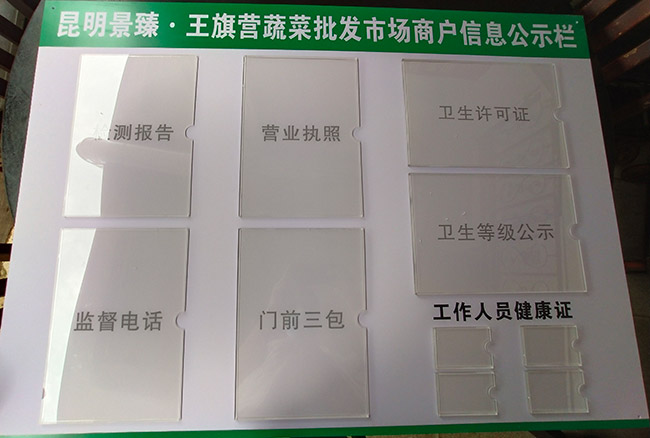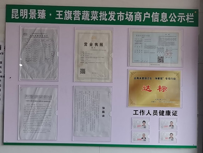 市場給每戶商戶配備了商戶信息公示欄,并明確告知商戶嚴(yán)格按照公示欄的要求做到證件齊全,亮證經(jīng)營。