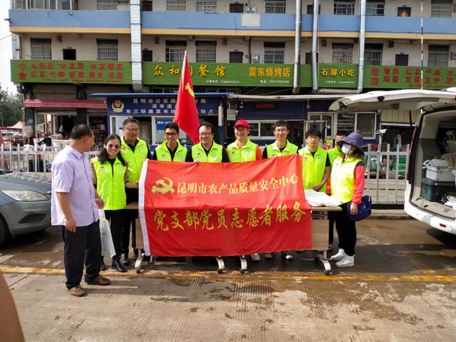 7月22日上午昆明市農(nóng)產(chǎn)品質(zhì)量安全中心蒞臨市場開展農(nóng)產(chǎn)品質(zhì)量安全知識普及、農(nóng)產(chǎn)品質(zhì)量安全法律法規(guī)知識及監(jiān)管、綠色(有機)食品宣傳活動。