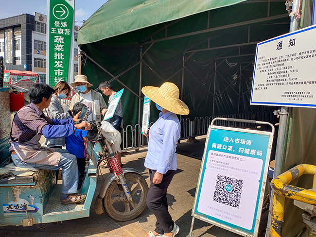 當(dāng)前國內(nèi)疫情多地散發(fā),防疫任務(wù)艱巨;昆明景臻·王旗營蔬菜批發(fā)市場根據(jù)8月3日官渡區(qū)金馬街道辦事處、官渡區(qū)市場監(jiān)管局金馬所組織召開的關(guān)于當(dāng)前《疫情防控工作會議》相關(guān)要求,我公司總經(jīng)理立即組織召開了疫情防控專題會議,根據(jù)我公司實際,按各部門的工作職責(zé)進(jìn)行了詳細(xì)分工,積極配合上級部門共同把防疫工作抓牢做實。進(jìn)一步壓實企業(yè)主體責(zé)任,嚴(yán)格落實各項防控措施,從細(xì)從嚴(yán)抓好入場人員、商戶及從業(yè)人員的管控、掃碼測溫口罩監(jiān)測、核酸報告核查、中高風(fēng)險地區(qū)人員車輛的登記、環(huán)境清潔消毒等各方面工作,切實筑牢疫情防控安全防線。同時抓緊抓好穩(wěn)價保供工作,徹底排查食品安全隱患,全力保障人民群眾“菜籃子”的安全。