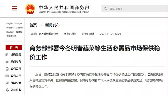 近日,商務部一則通知刷屏。我們不妨看看,通知標題是《關于做好今冬明春蔬菜等生活必需品市場保供穩(wěn)價工作的通知》。內(nèi)容方面強調(diào),保障今冬明春廣大人民群眾生活必需品供應充足,切實做好市場保供穩(wěn)價工作。