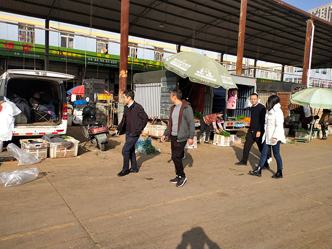 12月17日下午,省發(fā)改委經(jīng)貿(mào)貿(mào)易處處長沈偉率領(lǐng)市發(fā)改委相關(guān)處室領(lǐng)導(dǎo)蒞臨市場調(diào)研,調(diào)研組就近期蔬菜批發(fā)市場供應(yīng)及價格變化情況進行了實地巡視,市場辦公室相關(guān)人員陪同接待并詳細介紹了市場的經(jīng)營情況,F(xiàn)場,領(lǐng)導(dǎo)們向商戶詳細詢問蔬菜的價格、產(chǎn)地、運輸?shù)纫约笆袌龅娜战灰琢亢推骄灰變r格。下一步,我們將繼續(xù)統(tǒng)籌做好蔬菜保供、民生保障,抓牢做實昆明“菜籃子”的穩(wěn)價保供工作。