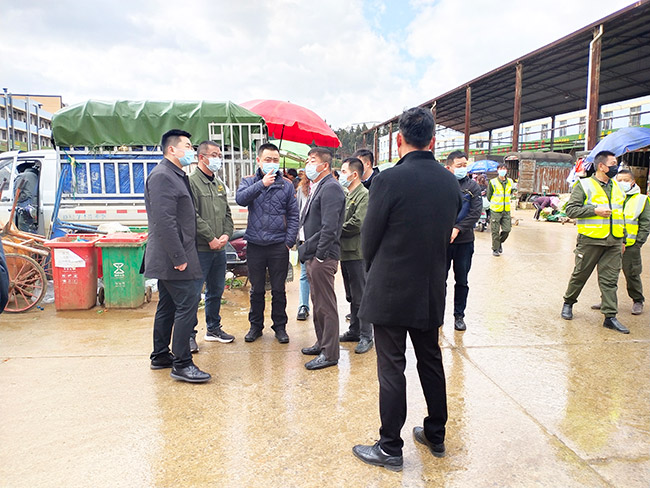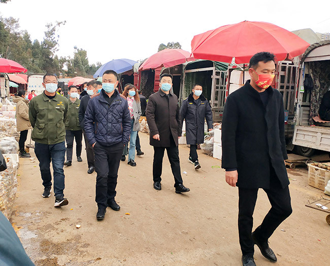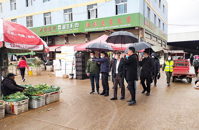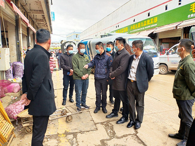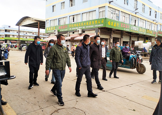 群防群治,齊抓共管,共建和諧市場。1月28日下午,官渡區(qū)政府常務(wù)副區(qū)長黃忠粱、副區(qū)長趙志紅帶領(lǐng)官渡區(qū)金馬街道辦事處、金馬街道應(yīng)急管理中心等部門領(lǐng)導(dǎo)蒞臨市場進(jìn)行檢查指導(dǎo)工作;公司董事長呂培景,總經(jīng)理馬復(fù)坤率隊(duì)一路陪同接待。