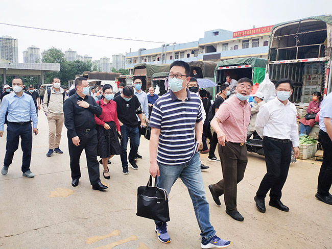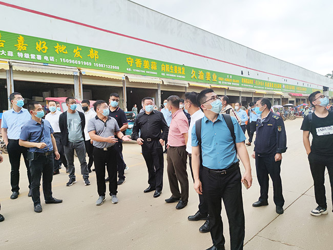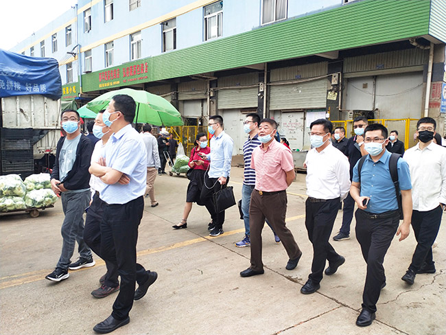 6月13日下午,福州市商務(wù)局、市發(fā)展研究中心、市農(nóng)業(yè)農(nóng)村局、市政府辦商管處、市商務(wù)局有關(guān)處室,民天集團(tuán)、華威集團(tuán)等組成的考察團(tuán)蒞臨昆明景臻·王旗營(yíng)蔬菜批發(fā)市場(chǎng)考察調(diào)研。昆明市農(nóng)業(yè)農(nóng)村局、市商務(wù)局、市投資促進(jìn)局、官渡區(qū)市場(chǎng)監(jiān)管局金馬管理所、金馬街道辦事處等相關(guān)領(lǐng)導(dǎo)陪同調(diào)研。昆明景臻·王旗營(yíng)蔬菜批發(fā)市場(chǎng)金忠華副總經(jīng)理向考察團(tuán)詳細(xì)介紹了市場(chǎng)運(yùn)營(yíng)情況,并就市領(lǐng)導(dǎo)關(guān)心的“菜籃子”工程建設(shè)發(fā)展方面做了匯報(bào)?疾靾F(tuán)對(duì)市場(chǎng)各項(xiàng)工作給予了肯定,并對(duì)市場(chǎng)“菜籃子”工程建設(shè)發(fā)展等提出了指導(dǎo)性建議。公司董事長(zhǎng)呂培景及總經(jīng)理馬復(fù)坤對(duì)考察團(tuán)的親自指導(dǎo)和關(guān)心支持表示感謝。