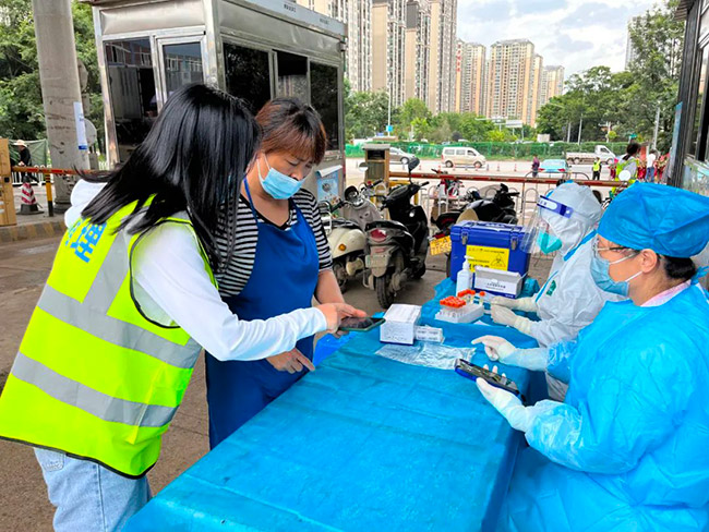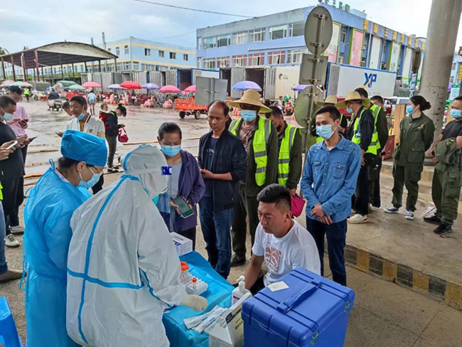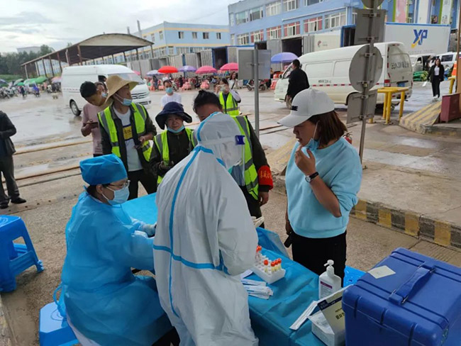 7月1日下午,金馬街道社區(qū)衛(wèi)生服務(wù)中心到我市場免費為商戶做核酸檢測。