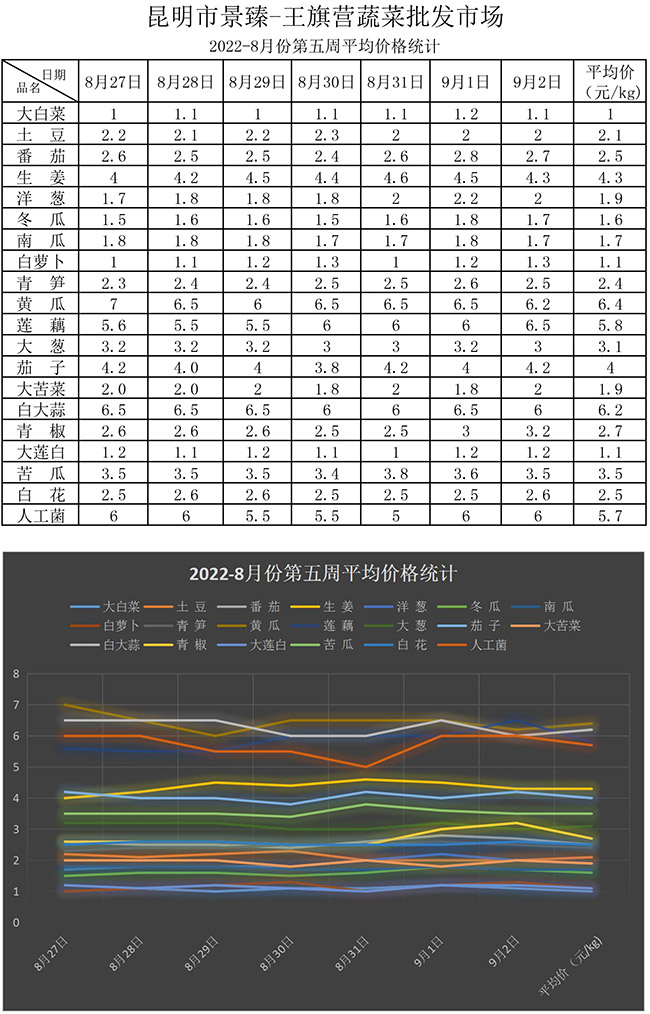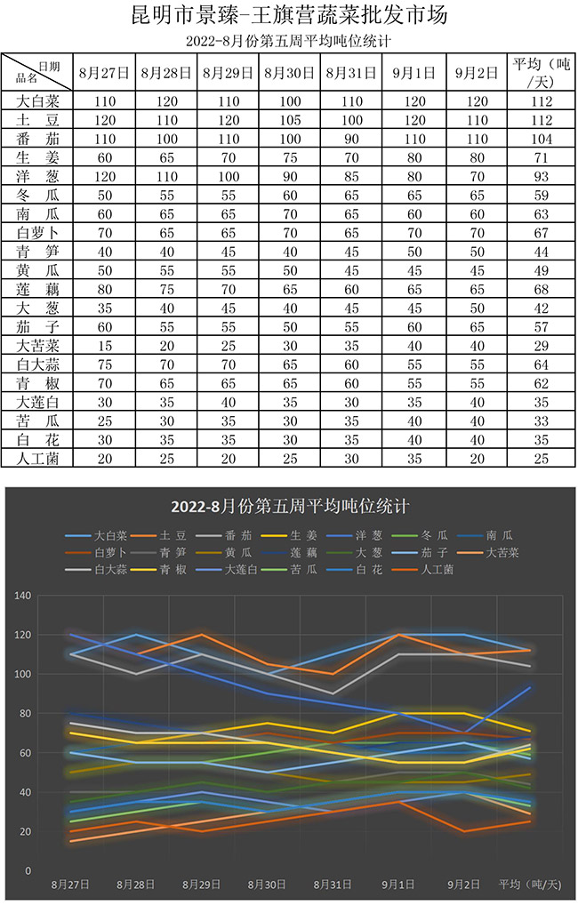 • 【20個(gè)蔬菜平均價(jià)格噸位統(tǒng)計(jì)分析】2022年8月第五周