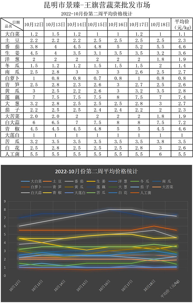 • 【20個蔬菜平均價格噸位統(tǒng)計分析】2022年10月第二周