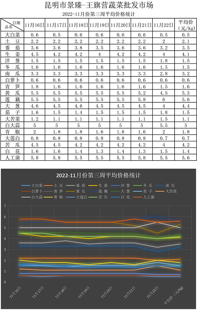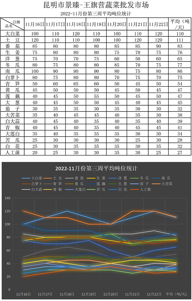 • 【20個(gè)蔬菜平均價(jià)格噸位統(tǒng)計(jì)分析】2022年11月第三周