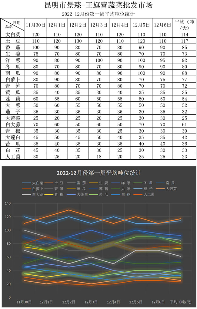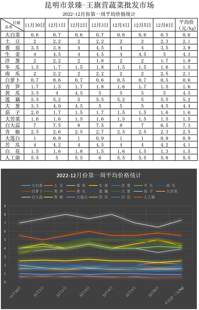 • 【20個(gè)蔬菜平均價(jià)格噸位統(tǒng)計(jì)分析】2022年12月第一周