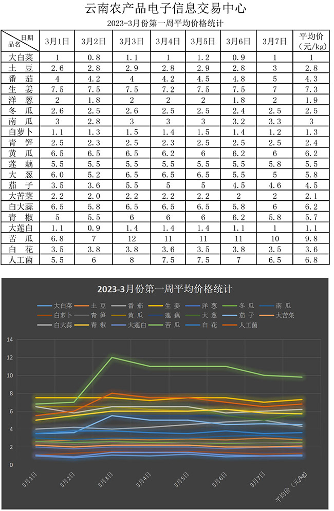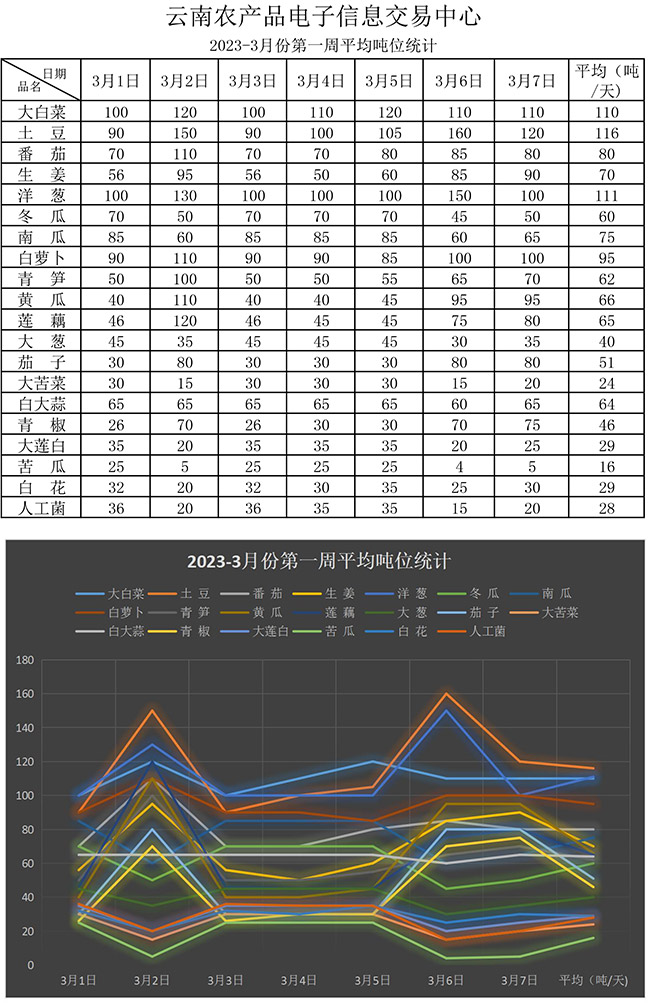 • 【20個蔬菜平均價格噸位統(tǒng)計分析】2023年3月第一周