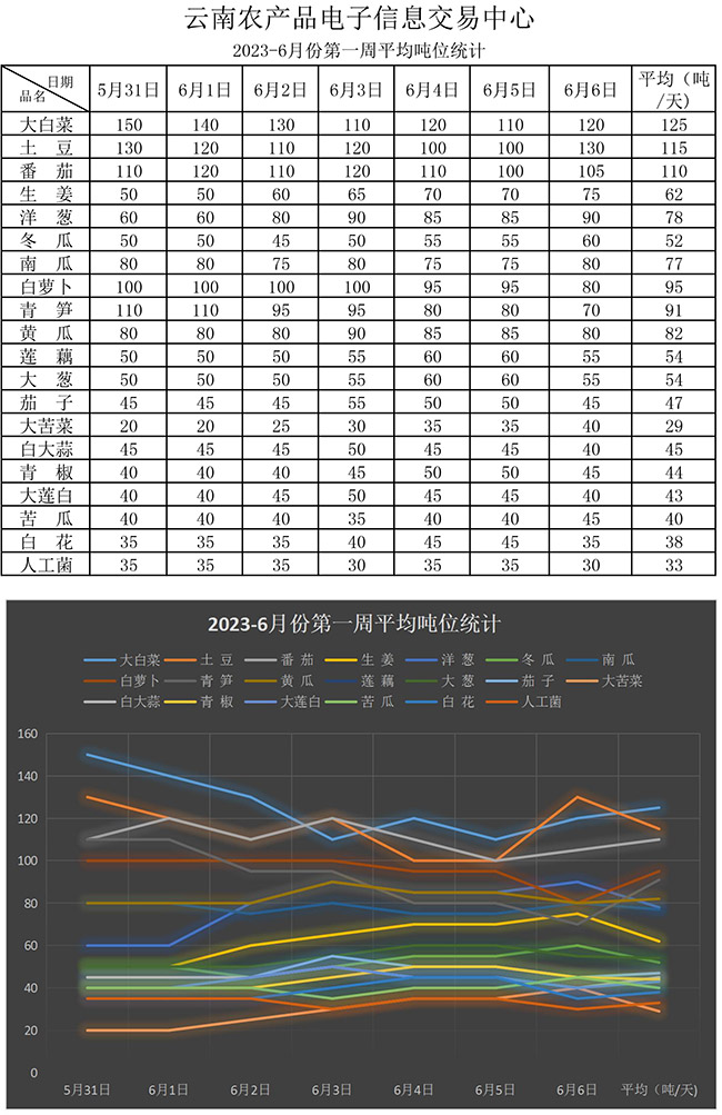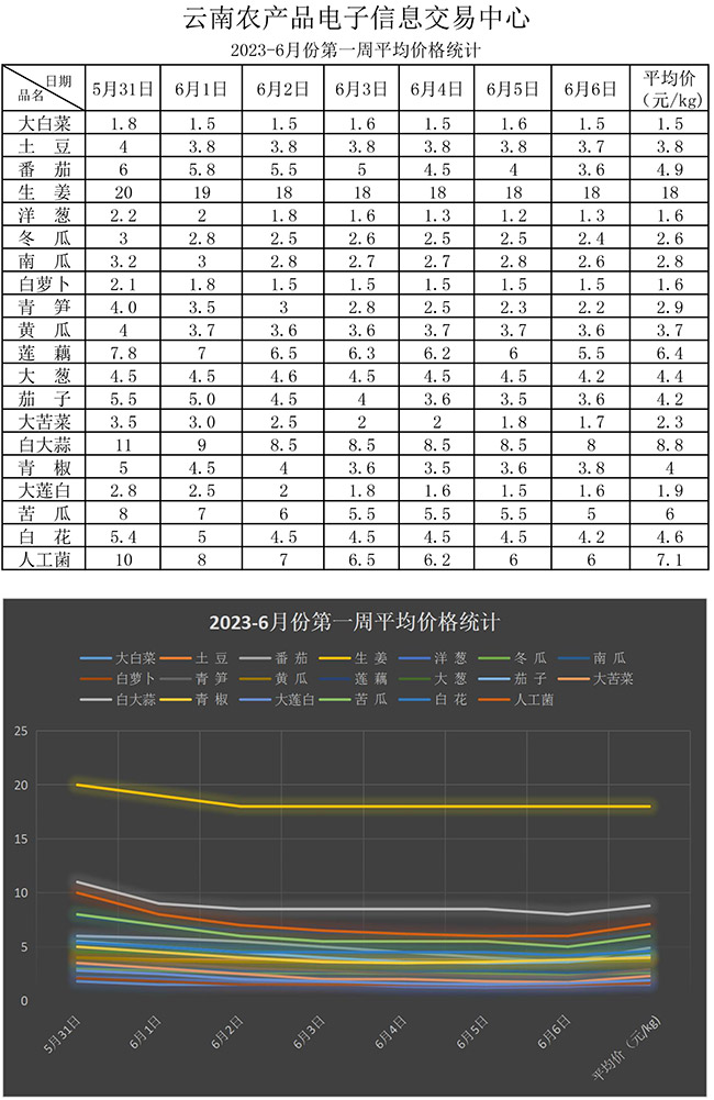 • 【20個蔬菜平均價格噸位統(tǒng)計(jì)分析】2023年6月第一周