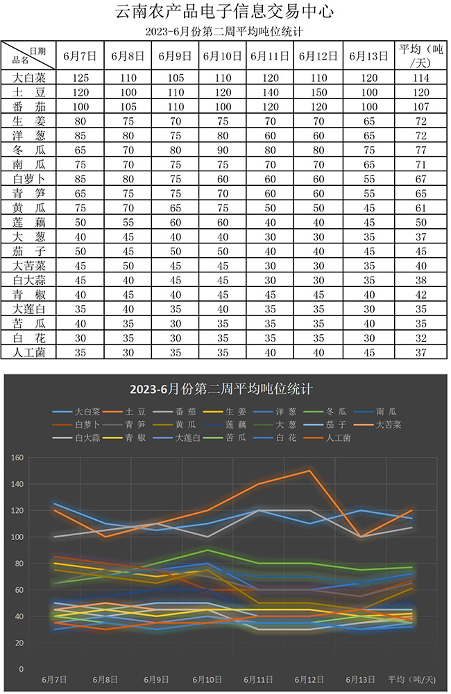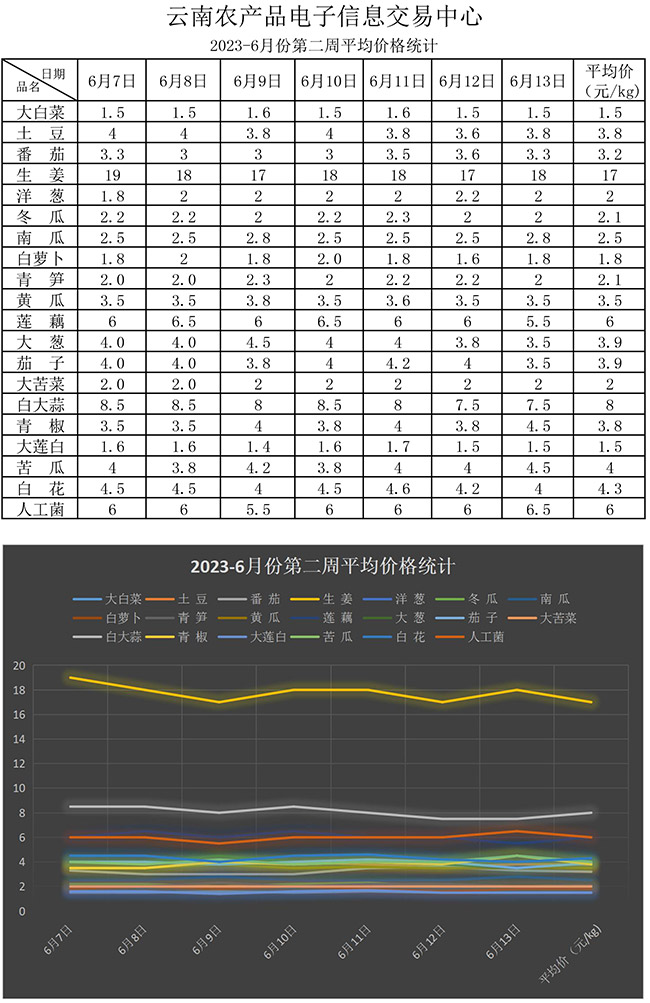 • 【20個(gè)蔬菜平均價(jià)格噸位統(tǒng)計(jì)分析】2023年6月第二周