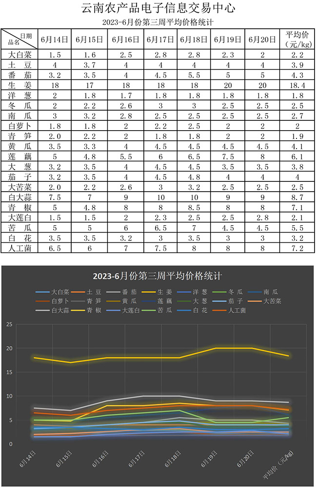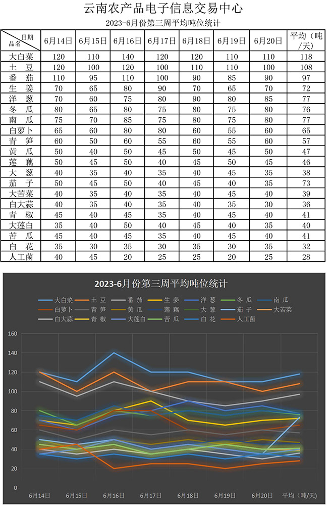 • 【20個(gè)蔬菜平均價(jià)格噸位統(tǒng)計(jì)分析】2023年6月第三周