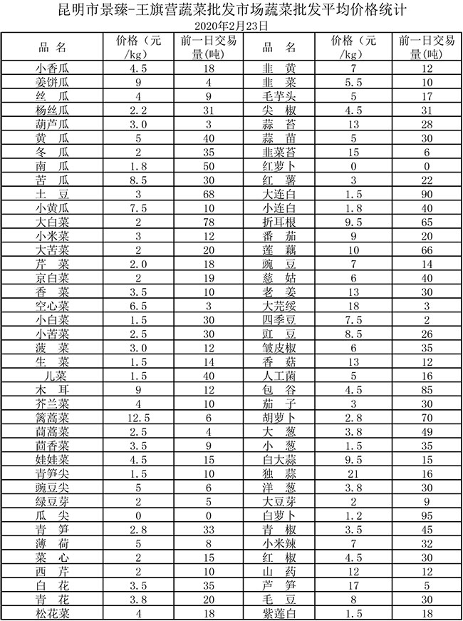 • 昆明景臻·王旗營蔬菜批發(fā)市場平均價格統(tǒng)計2020年2月23日