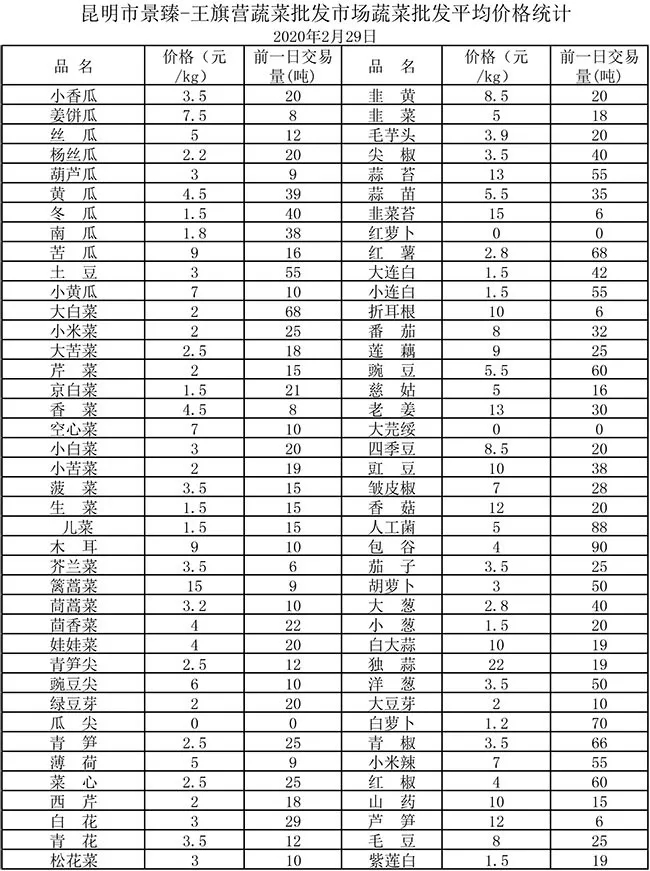• 市場(chǎng)平均價(jià)格統(tǒng)計(jì)2020年2月29日