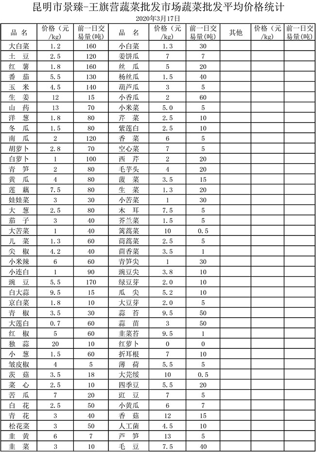• 市場(chǎng)平均價(jià)格統(tǒng)計(jì)2020年3月17日
