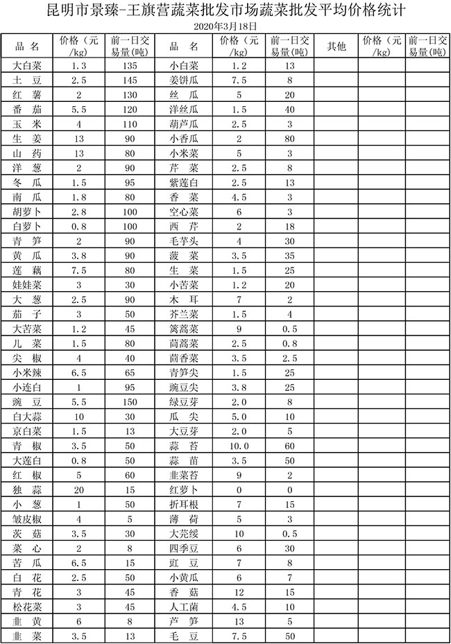 • 市場(chǎng)平均價(jià)格統(tǒng)計(jì)2020年3月18日
