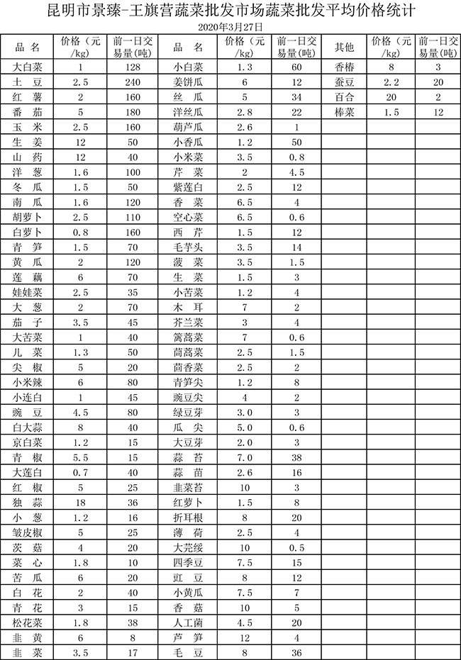 • 市場(chǎng)平均價(jià)格統(tǒng)計(jì)2020年3月27日