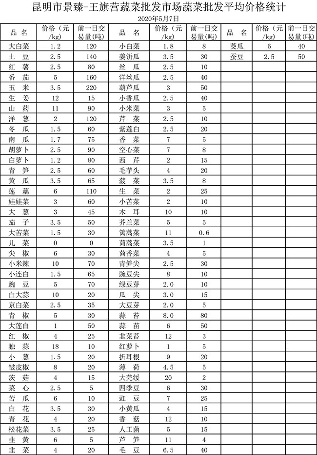 • 市場(chǎng)平均價(jià)格統(tǒng)計(jì)2020年5月7日