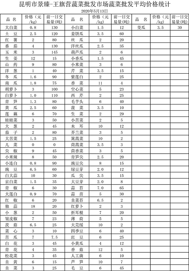 • 市場平均價格統(tǒng)計2020年5月13日
