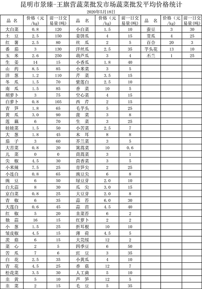 • 市場(chǎng)平均價(jià)格統(tǒng)計(jì)2020年5月18日