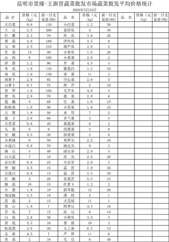 • 市場(chǎng)平均價(jià)格統(tǒng)計(jì)2020年5月23日