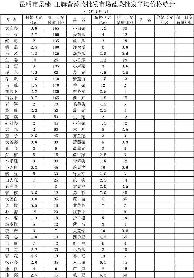 • 市場(chǎng)平均價(jià)格統(tǒng)計(jì)2020年5月27日