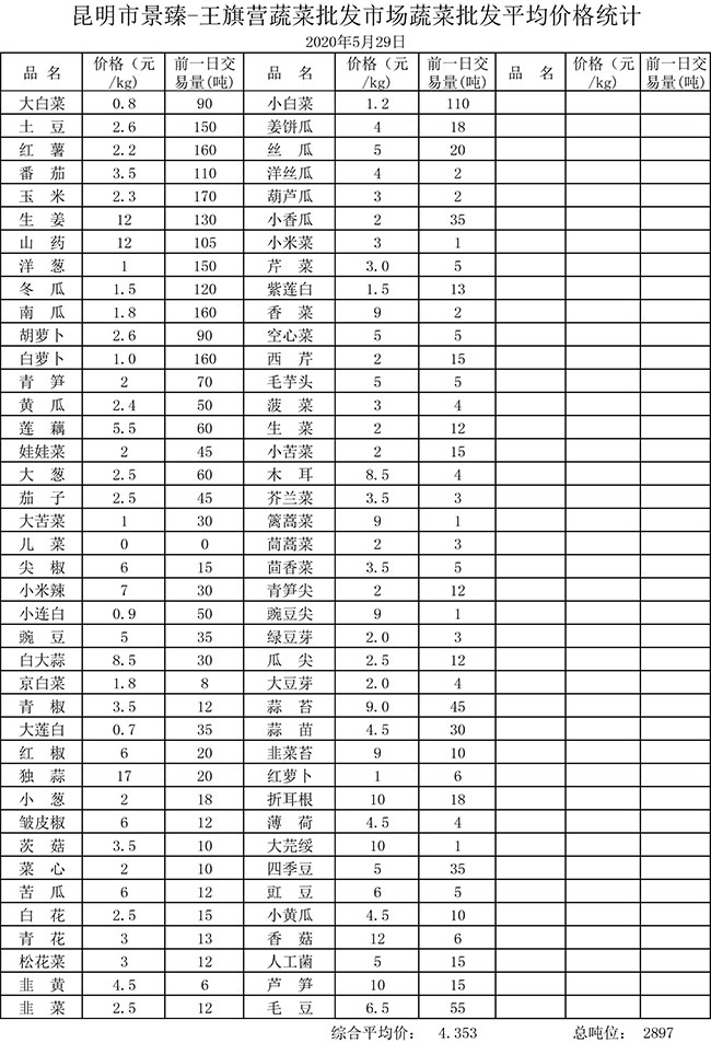 • 市場平均價(jià)格統(tǒng)計(jì)2020年5月29日