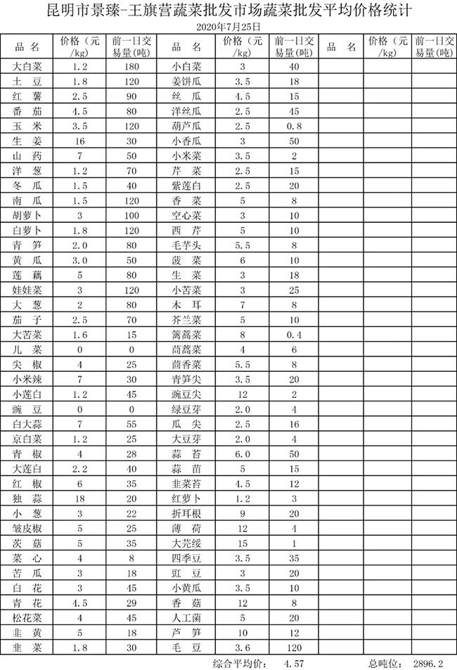 • 市場平均價格統(tǒng)計(jì)2020年7月25日