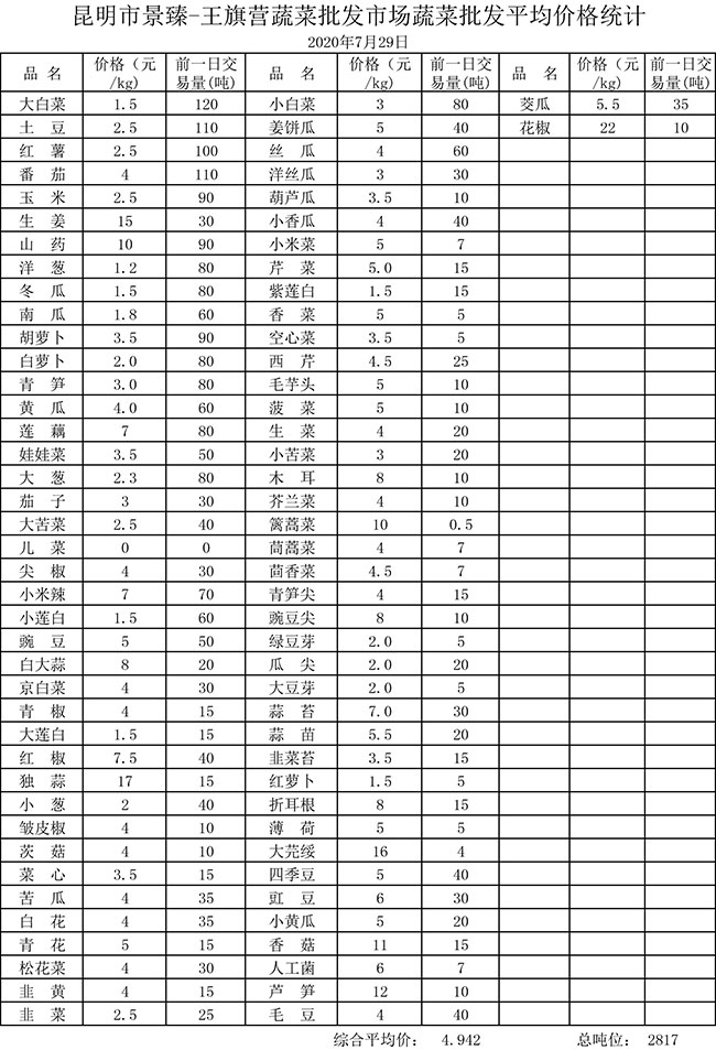 • 市場(chǎng)平均價(jià)格統(tǒng)計(jì)2020年7月29日