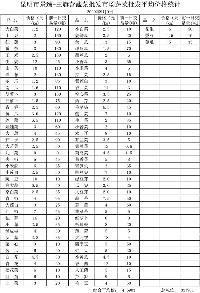 • 市場(chǎng)平均價(jià)格統(tǒng)計(jì)2020年9月9日