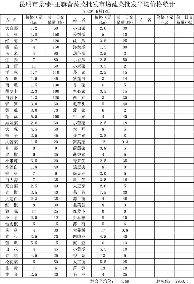 • 市場平均價格統(tǒng)計2020年9月18日