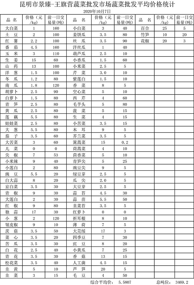 • 市場平均價(jià)格統(tǒng)計(jì)2020年10月7日