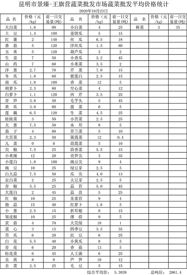 • 市場平均價格統(tǒng)計2020年10月23日