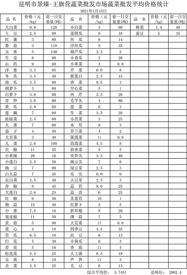 • 市場(chǎng)平均價(jià)格統(tǒng)計(jì)2021年1月15日