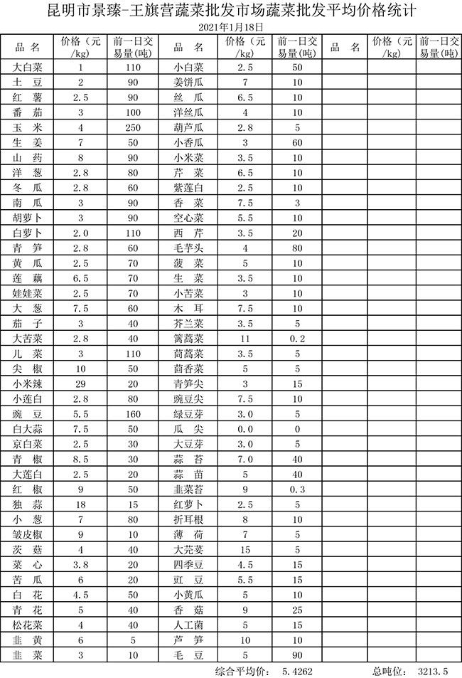 • 市場(chǎng)平均價(jià)格統(tǒng)計(jì)2021年1月18日