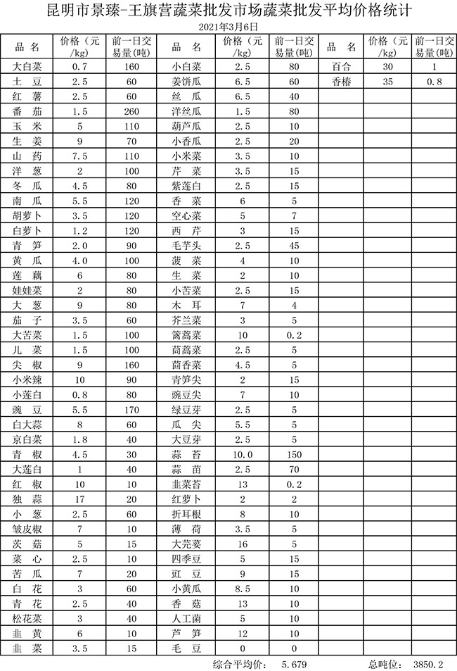 • 市場(chǎng)平均價(jià)格統(tǒng)計(jì)2021年3月6日